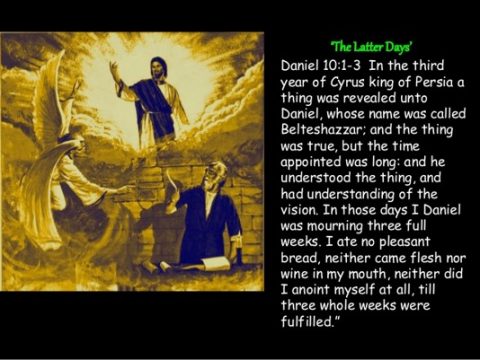 In short, it is as if Gabriel were telling Daniel: 'I know you have been mourning, fasting and praying for three full weeks because you wanted a clearer understanding of the end-time elements of the vision of Daniel 8. The very moment you started to pray, I had every intention of coming immediately to answer your plea as I had done the previous time you prayed (Daniel 9:20-23) but this time I was delayed. You see, I was involved in this conflict with the prince of the kingdom of Persia. He was influencing the minds of the Persian kings so that they would halt the rebuilding of the temple. But at the end of the 21 days, Michael came to help me and we prevailed. The opposition you have seen by the Samaritans is really the visible manifestation of this invisible conflict. But now I have finally been able to break away and help you understand 'what shall befall thy people in the latter days: for yet the vision is for many days.' (Daniel 10:14)." Don't miss the significance of the word yet. This word seems to imply that the vision (chazon) had already been partially explained in Daniel 9 (the 70 weeks) but that there were yet many days in the vision which had not yet been explained.